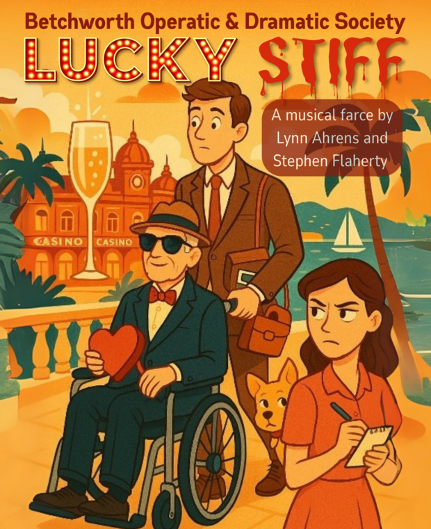 A fast-moving musical farce by Lynn Ahrens and Stephen Flaherty (presented by arrangement with Music Theatre International). Timid shoe salesman Harry must wheel his uncle's corpse through Monte Carlo to inherit 6 million dollars, but has to contend with a cast of unlikely characters. Betchworth Village Hall. Saturday matinee 2.30pm. More information at bodsweb.com